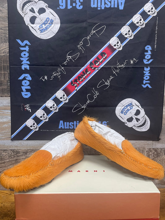 Marni Orange Fur Moccasin Slides 44EU/11US