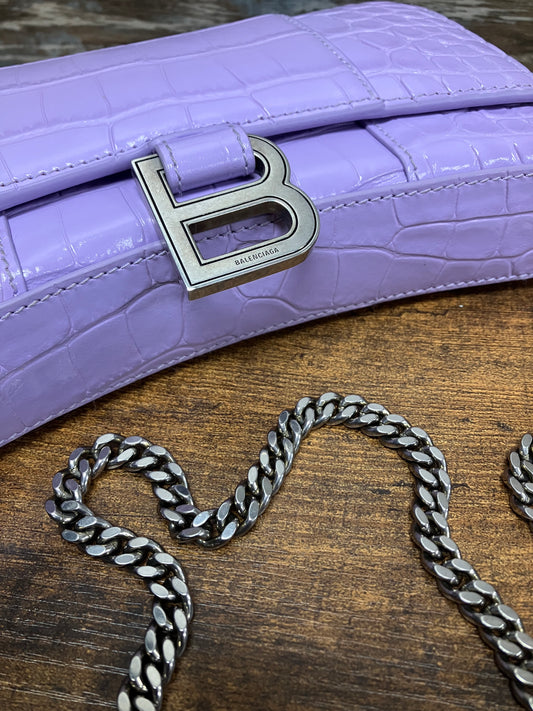 Balenciaga Embossed Hourglass Purse Purple Sz OS