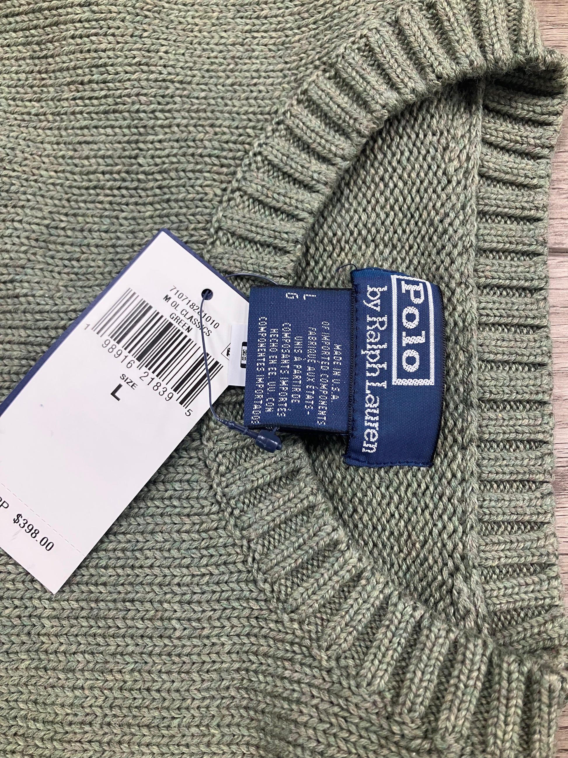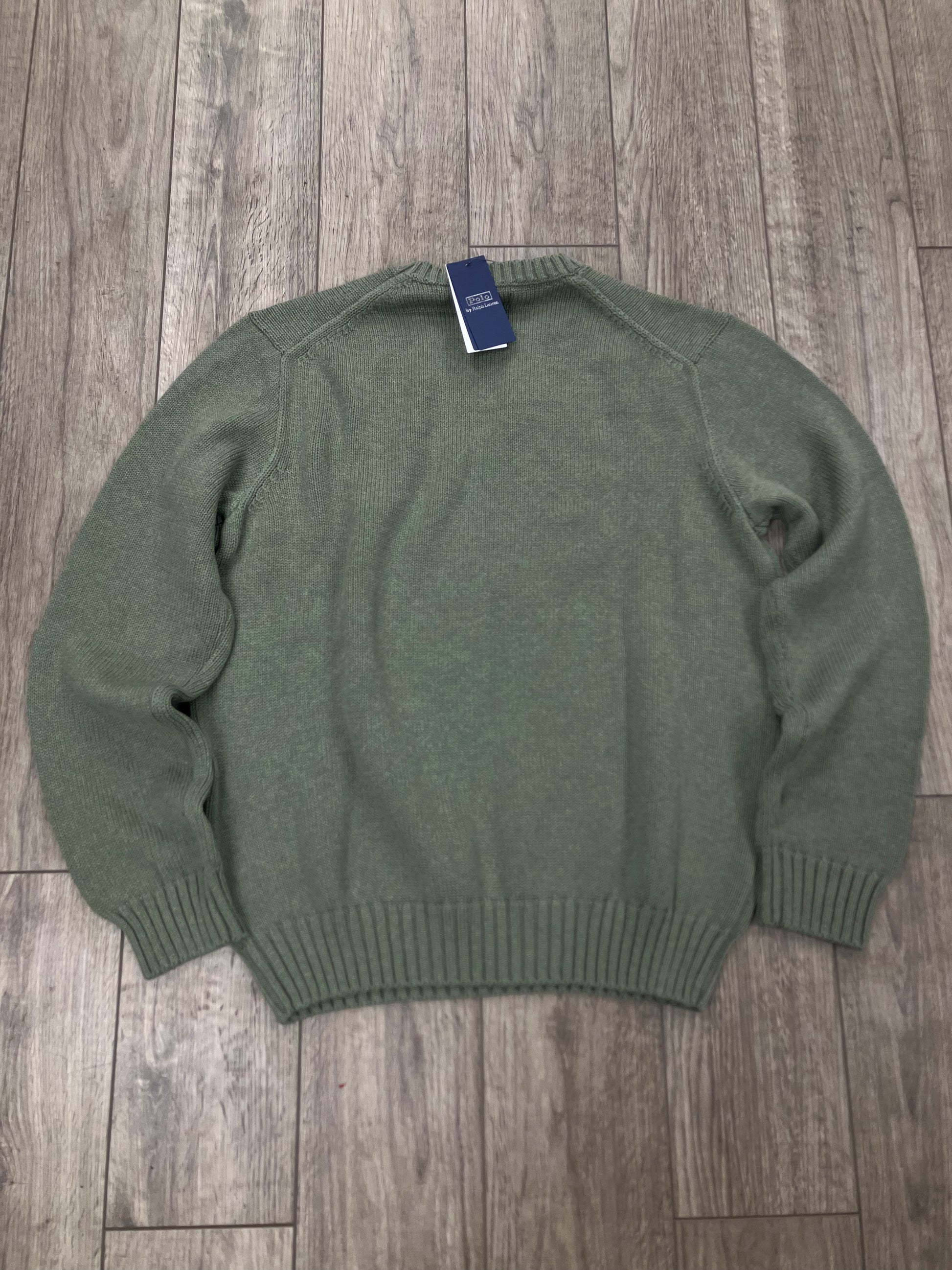 L-Polo Ralph Lauren Olive Green Flag Knit Sweater
