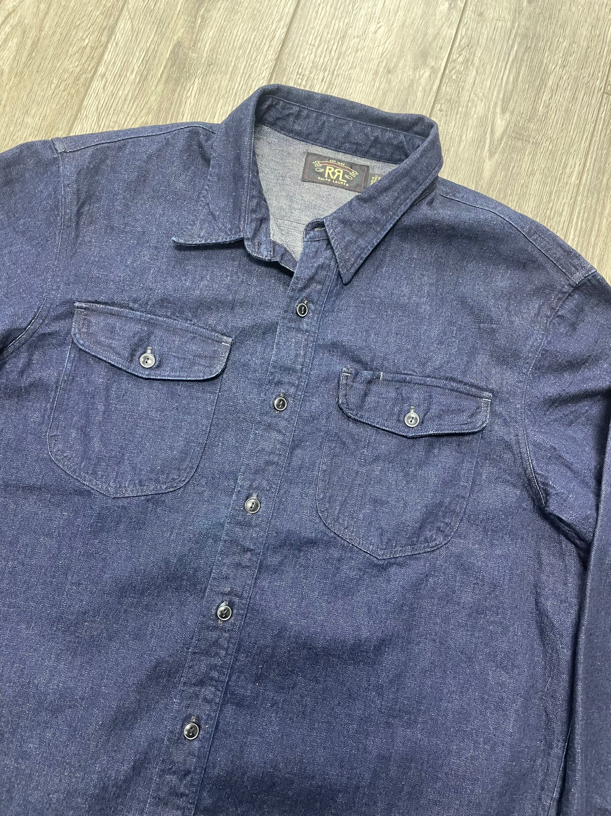 RRL Dark Washed Linen Denim Workshirt L